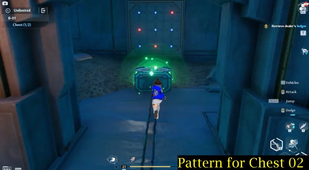 Go upstairs on the right side to find another room with a treasure chest. The panel needed to unlock this door can be found behind the chest. Below is the screenshot of the pattern that you need to make on the round platforms. Use the lever in the middle of the stairs to reset the platform.