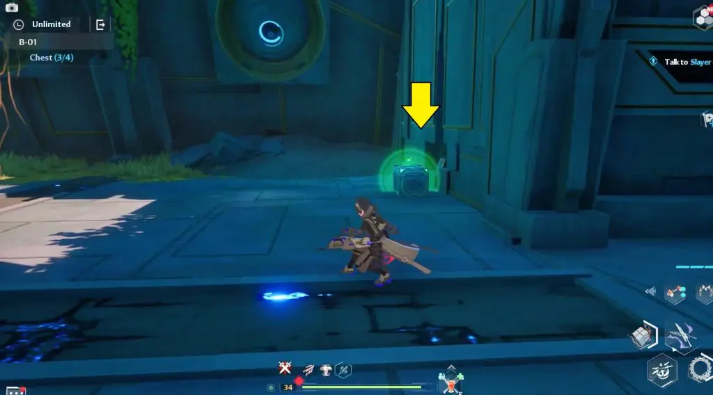 Enter into the Ruin B-01 and defeat the first set of the opponent. Pass through the small doorway to find a small chamber with a chest locked behind a door.