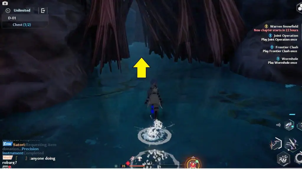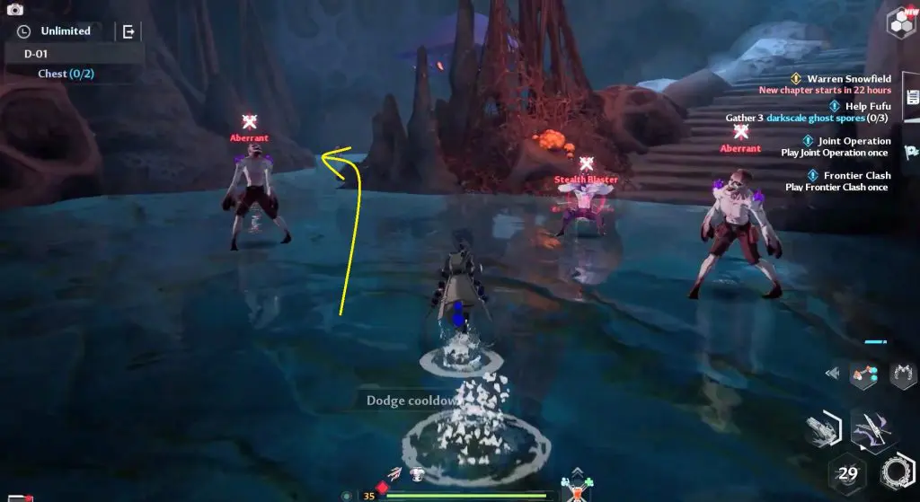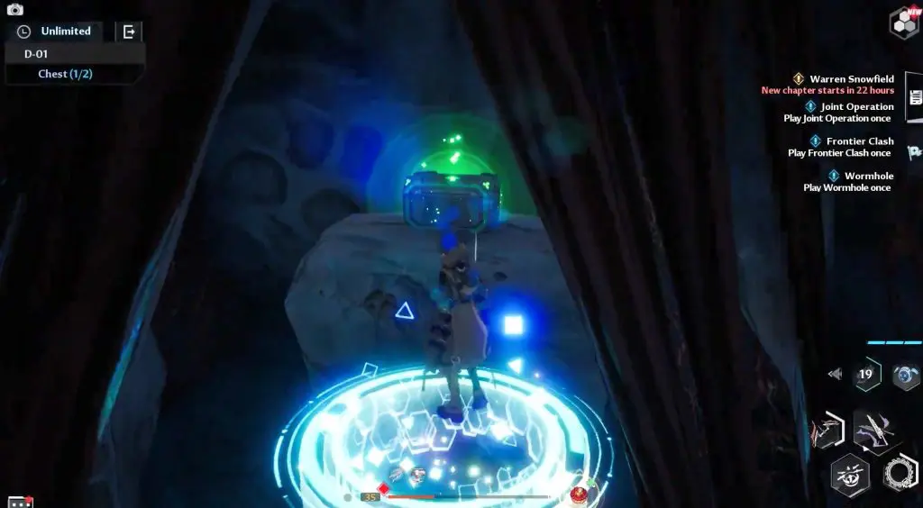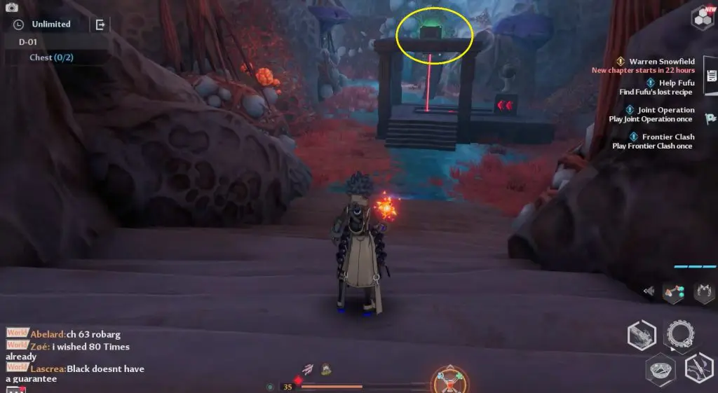 As you enter the Ruin D-01 you’ll encounter an NPC called Fufu. You can accept the side quest from him and then proceed up two sets of the ledge. Defeat all the opponents up the ledges.