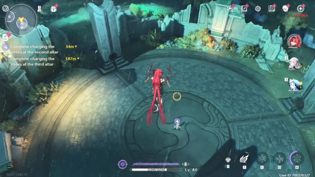 The first contraption’s location is marked on the map below. Go to this spot, interact with the pedestal to begin charging the Steles, and defend against multiple waves of enemy attacks.