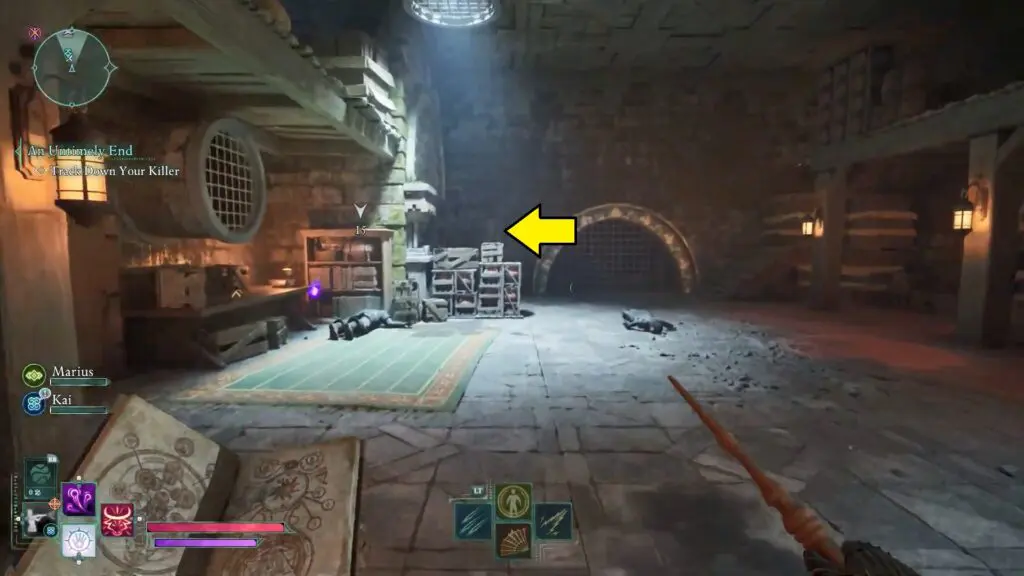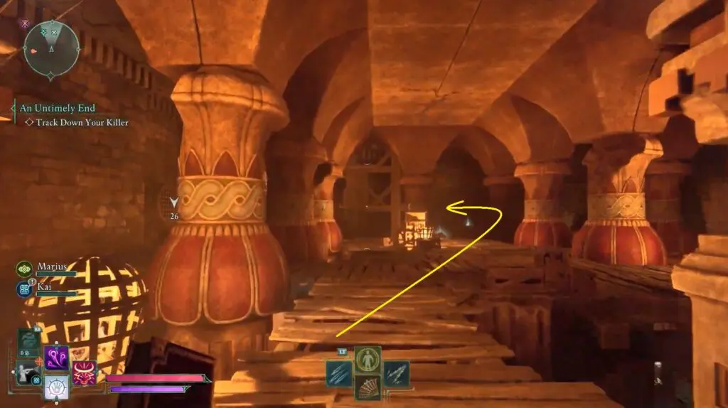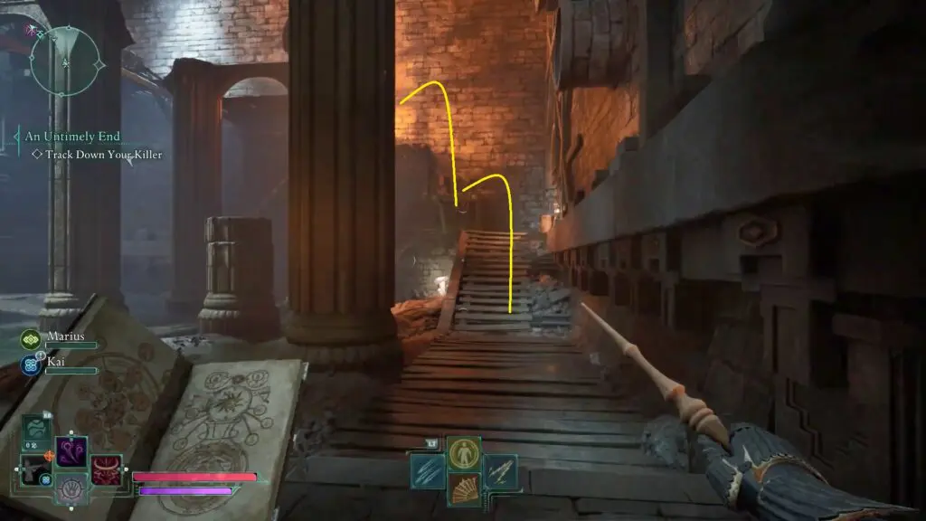 Once you receive the task to Track Down your Killer, go down the stairs to reach a larger area.