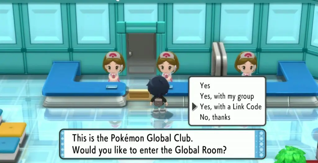 Inside the Union Room, talk to the girl at the entrance. You will have three options here: “Yes”, “Yes, with my group”, “Yes, with a Link code”. On choosing yes, you will go into a room that can be joined by anyone. The second option allows a group of up to 5 people. The option “Yes, with a Link code” allows you to join a room, where only the players entering the same 8-Digit link code as you can join.