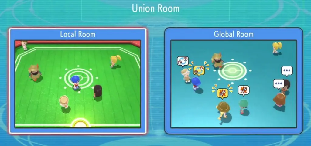 Once you have entered a Global Union Room, you can join a Union Room from anywhere on the map (Except when inside buildings and caves) without the need to go to a Pokemon center. Press ‘Y’ to enter a Union Room. Then select whether you want to join a ‘Local Room’ or a ‘global Room’. Once inside, you can do whatever you would usually do.