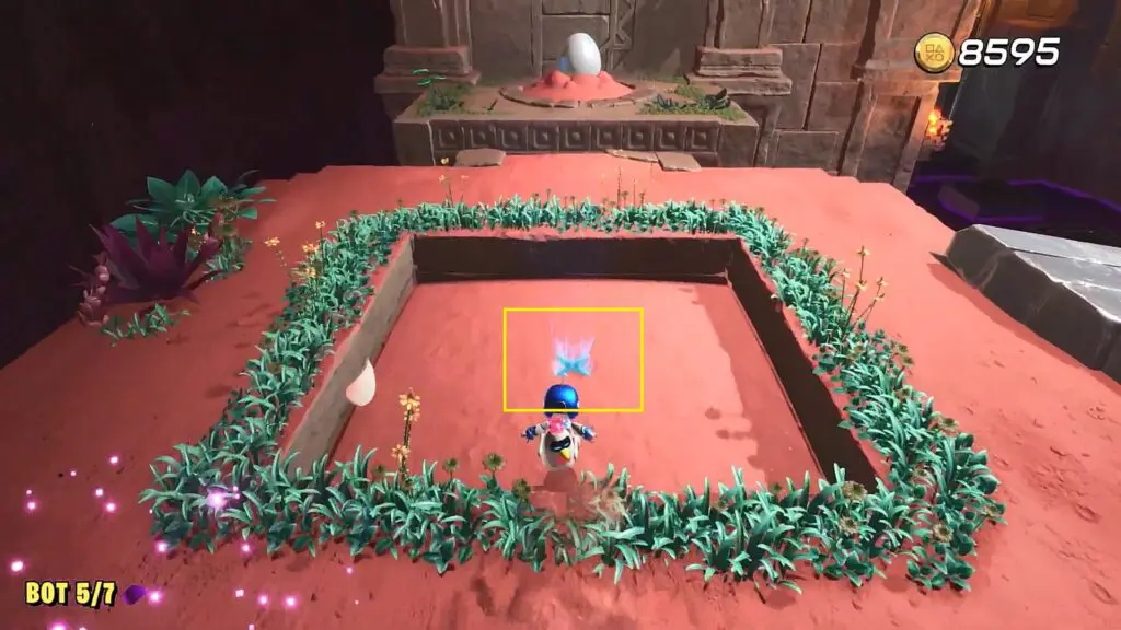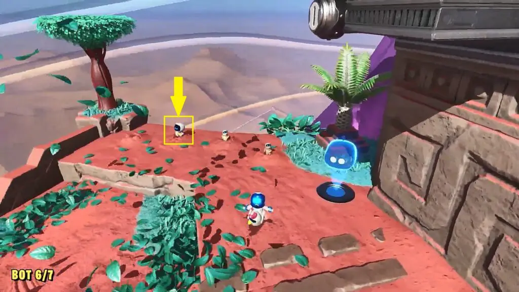 Proceed ahead and reach the open area. Continue to the upper level. There you will find a bot burrowed in the sand near the checkpoint as shown in the picture below.