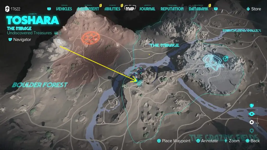 This guide shows how to get all 2 treasure chests in the Trapper’s Gulley in the Toshara region in Star Wars Outlaws, released on 30th August 2024. The location of Trapper’s Gulley is shown with a Yellow Arrow in the picture below.