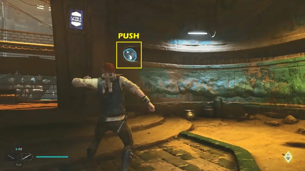 This objective starts in Penitent Chambers after Rendezvous with Cere’s Contact objective ends. Use grapple to climb up the wall as shown in the picture below.