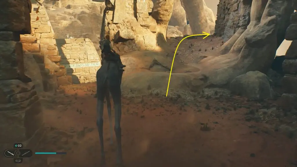 Continue in the linear path and it will take you to the desert as shown in the picture below. After entering the desert, you will face a sandstorm, and the Spamel will drop you.