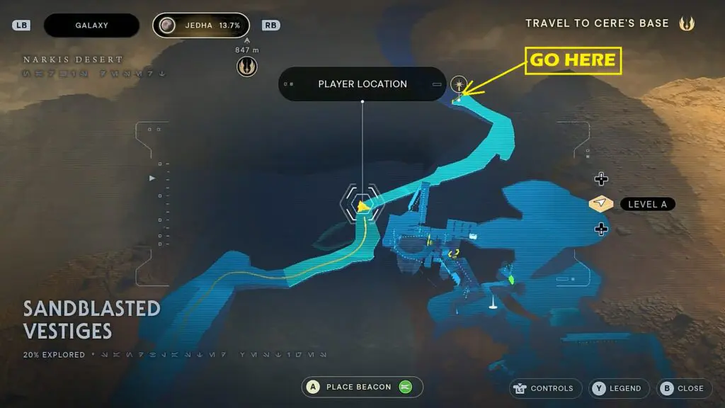 This guide shows how to complete the “Travel to Cere’s Base” objective in the Ancient Ruins area in Star Wars Jedi: Survivor game, which released on 28th April 2023. The video walkthrough is also posted below.