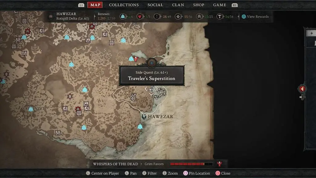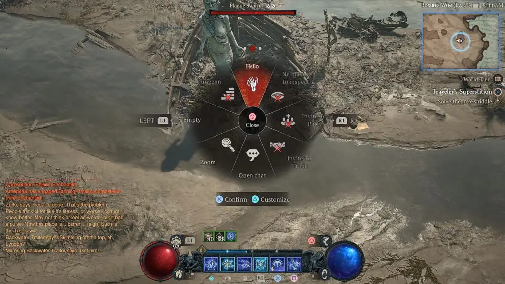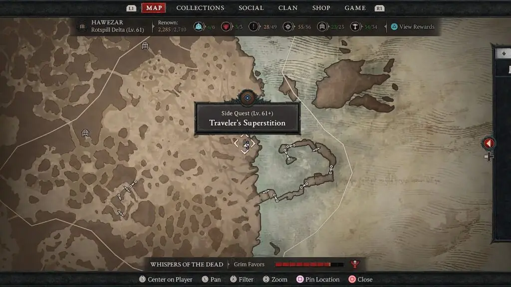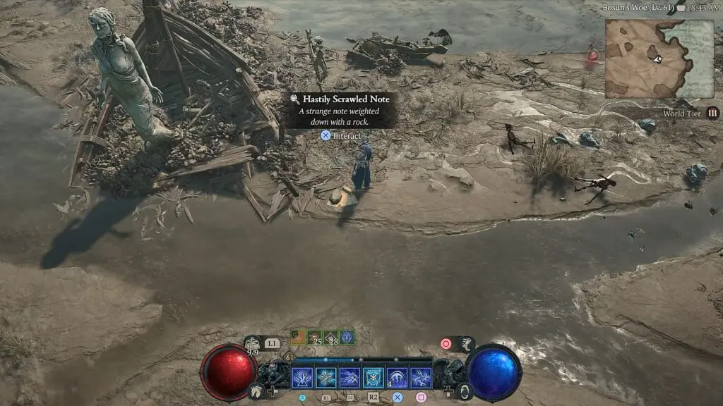 This guide shows the complete walkthrough of the Traveler’s Superstition side quest in the Diablo 4 game, released on 6th June 2023. You get the quest by reading the Hastily Scrawled Note in the Rotspill Delta area in the Hawezar region as shown in the pictures below.