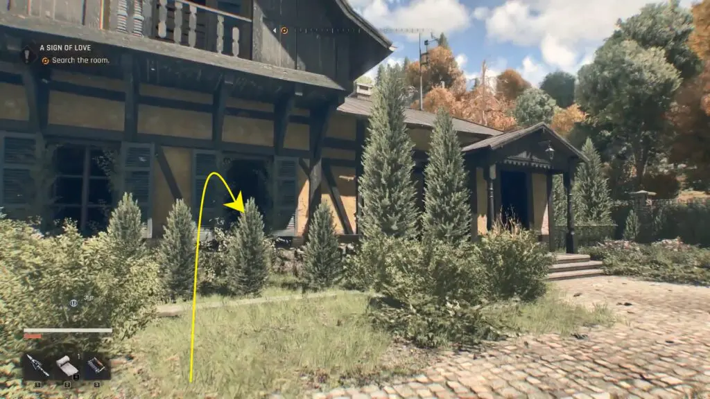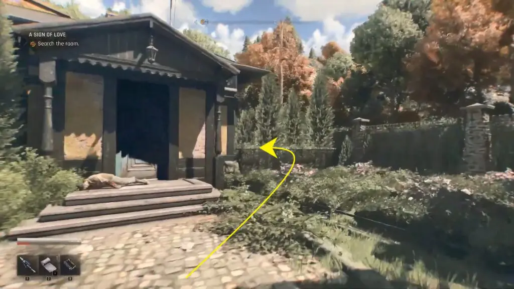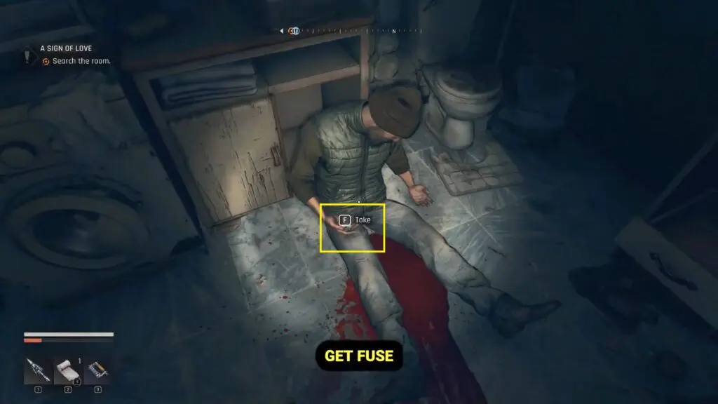 Go inside through the window and search for the dead body. Loot it to obtain a fuse, which you’ll need to power up the bunker.