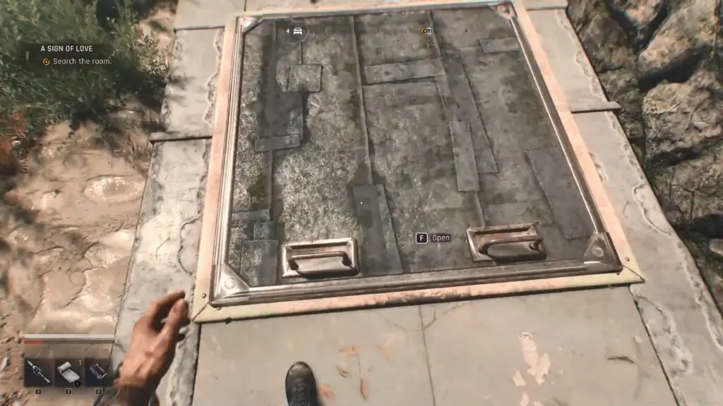 Next, move to the right side of the building and look for a hatch leading underground. Open it and drop down into the bunker.