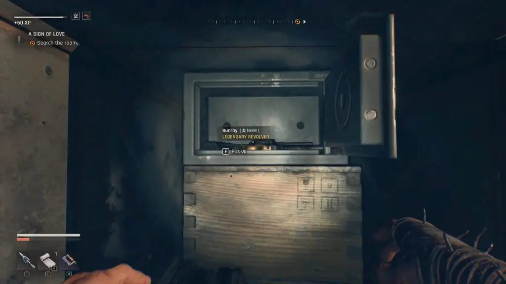 Use the code to unlock the safe. Inside, you’ll find the Sunray Legendary Revolver and some ammo.