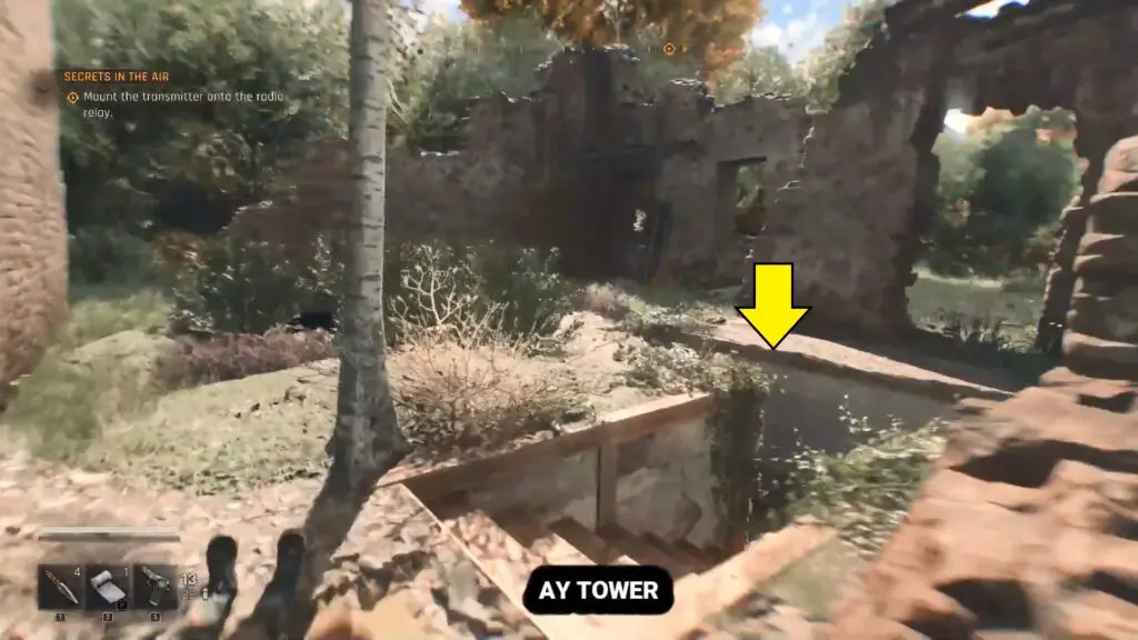 When you reach the ruined area, look for a hole in the ground and enter it.