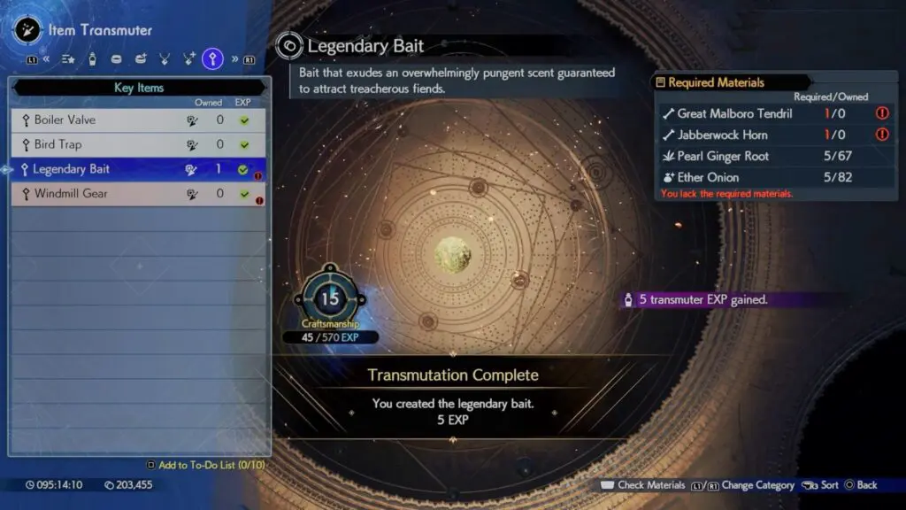 To attract the fiends hiding on the beach, you have to make really special bait. To do that, get 1 Great Malboro Tendril, 1 Jabberwock Horn, 5 Pearl Ginger Roots, and 5 Ether Onions.