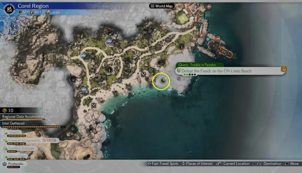 After defeating the fiends, head back to Kyrie on Costa Beach.