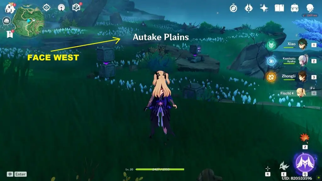 There are 5 rotating cubes at the location highlighted below. Make all the glowing sides face in the west direction to solve the puzzle. Hit the cubes till they turn west and get a common chest as a reward.