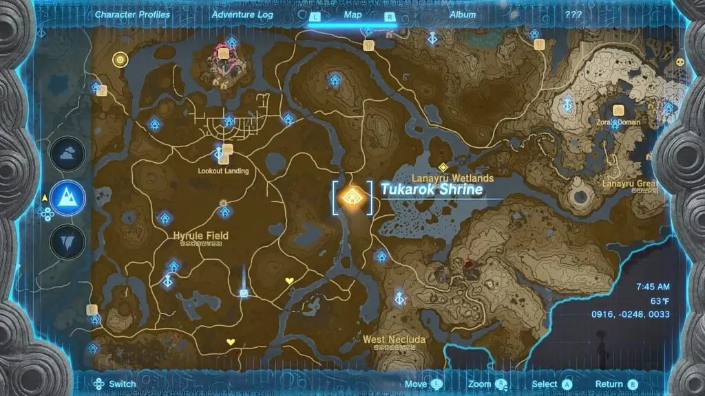 This guide shows how to complete the Tukarok Shrine in the Legend of Zelda: Tears of the Kingdom, released on 12th May 2023. The Tukarok Shrine is at the location shown in the picture below.