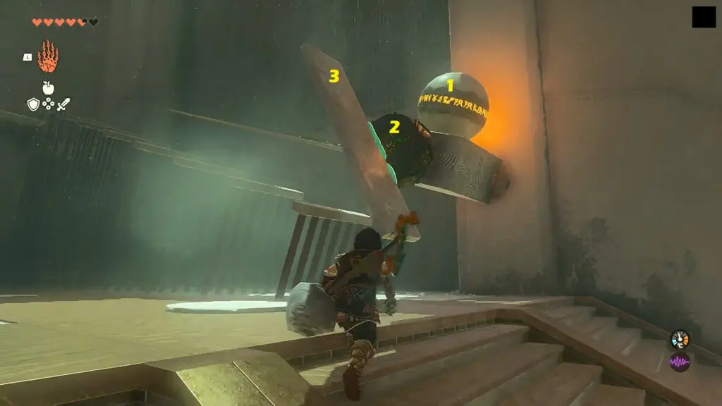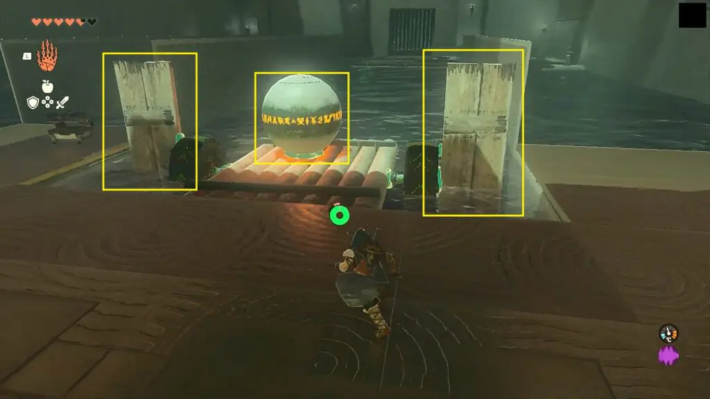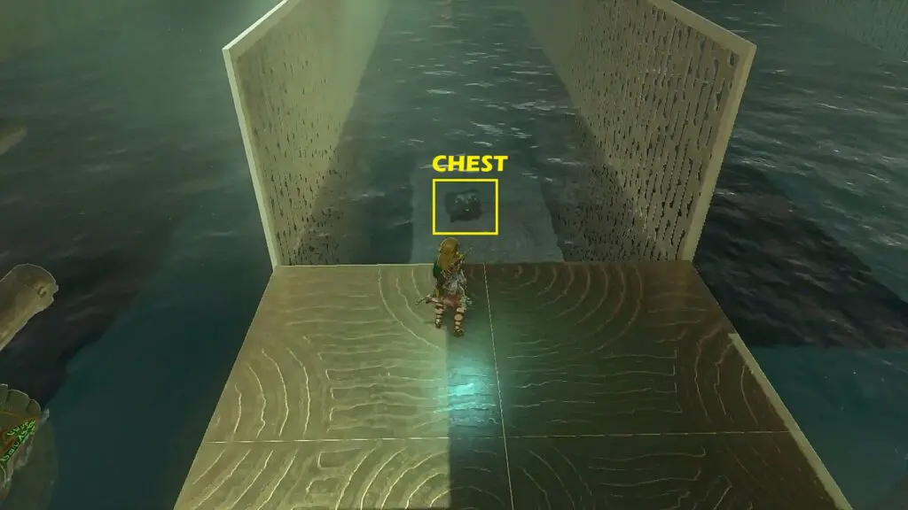 Use the Ultrahand ability to lift the sphere and take it to the next area. Here you will find a chest under the water as shown in the picture below. Use the Ultrahand ability to move the chest up. Then open it to get a Strong Zonaite Sword.