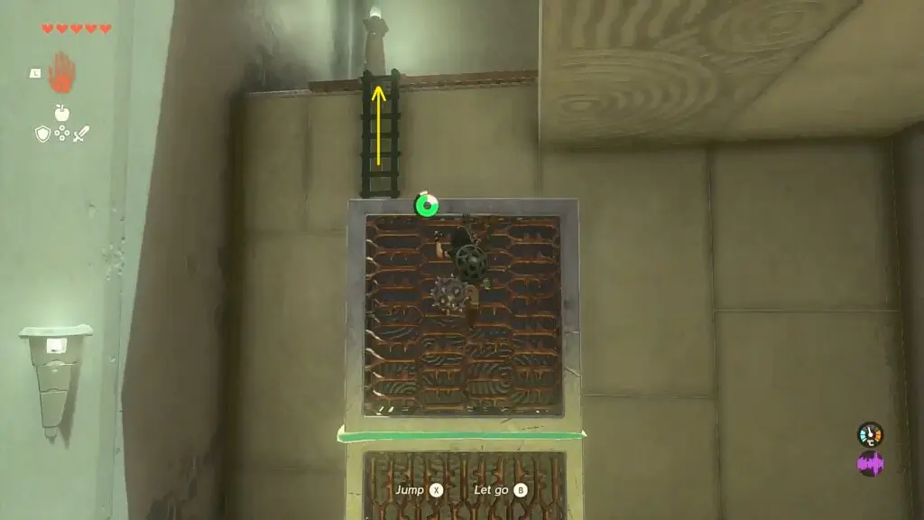 After entering the shrine, climb up the box to reach the platform ahead. Then pick up the box and stack it with another box as shown in the picture below. Then place the stack of boxes next to the ladder as shown below. Now climb up to the upper floor.