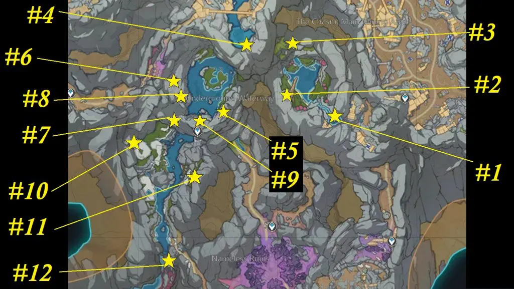 This guide shows how to find the location of all 12 Lumenspar in the Underground Waterway area in the game of Genshin Impact 2.6
