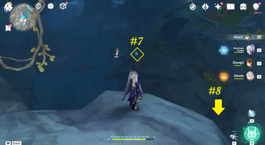 Head north from the last position and glide down to find the Lumenspar on the left on the top of a tree.