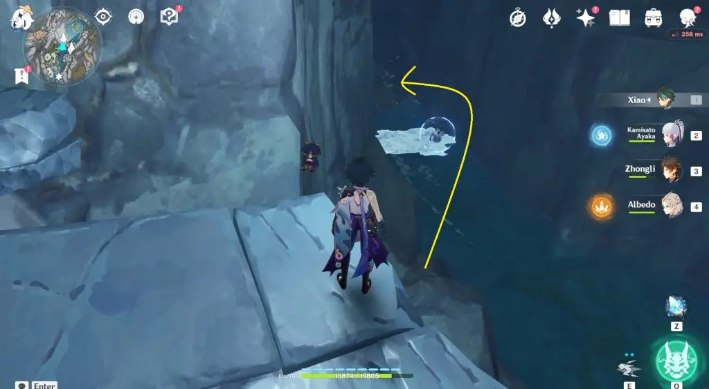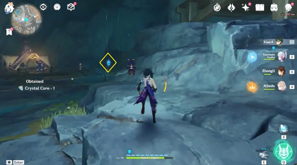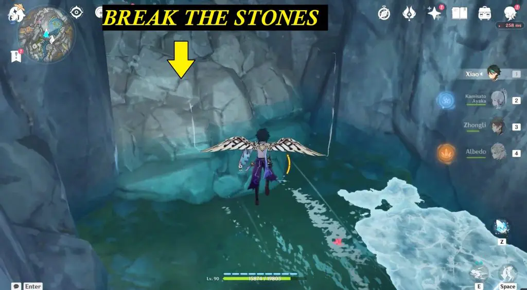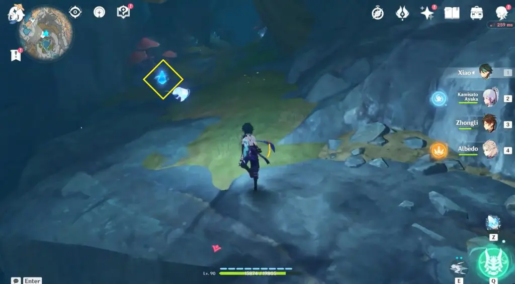 From the previous Lumenspar location, glide down slightly on the left where an Abyss Mages is present and a waterfall. Behind the waterfall, there are breakable stones. The Lumenspar is hidden behind those breakable stones.
