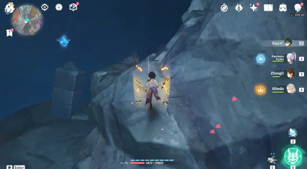 Glide down from the same teleport waypoint. This time keep yourself along the left wall to locate a purple portal/door on the mountain wall. Head inside the portal to find the Lumenspar.