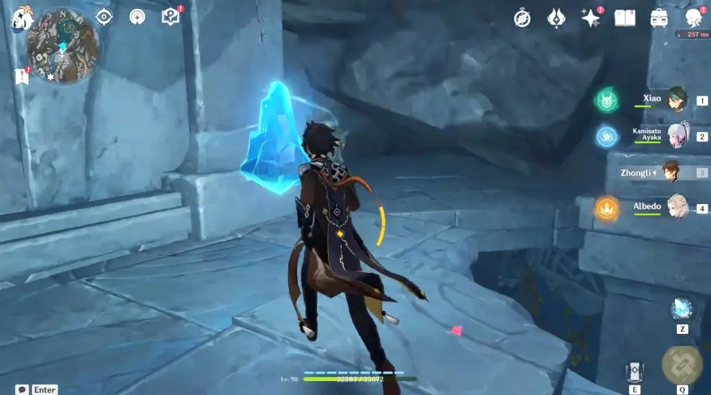 The next Lumenspar is located north of the previous one. Walk along the right side of the wall to find the stone.