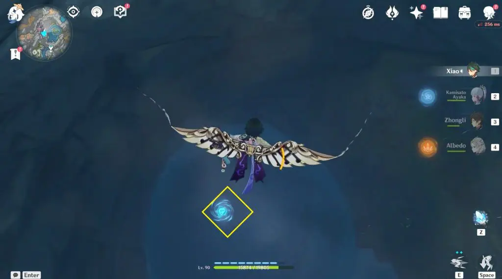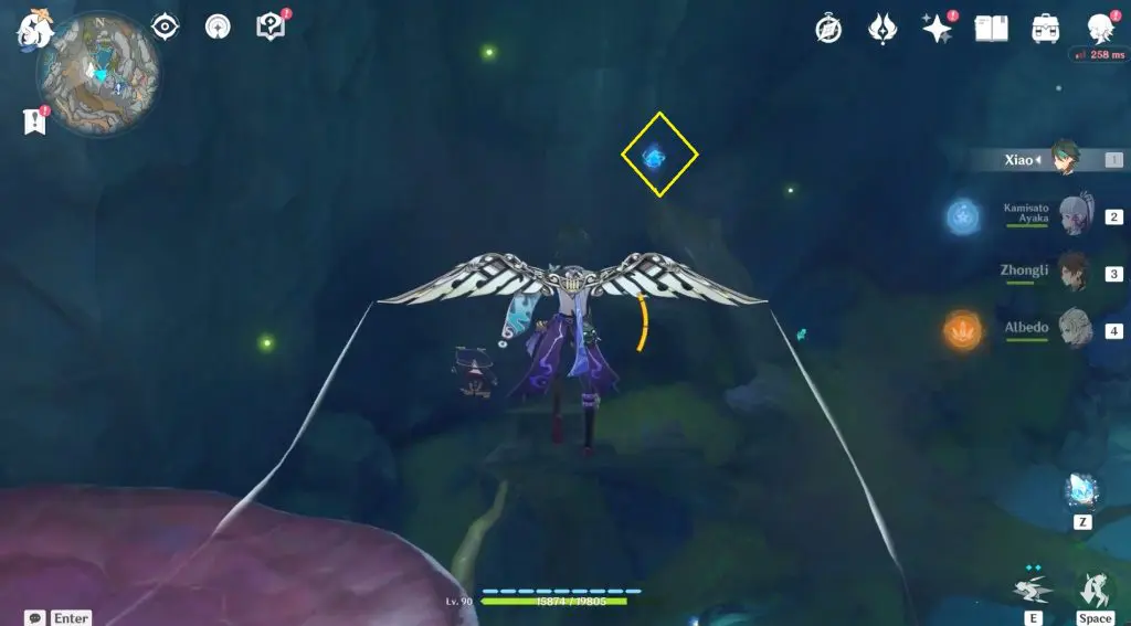 After collecting the previous Lumenspar, continue to glide down to the bottom. You will find this Lumenspar on the left near a waterway.