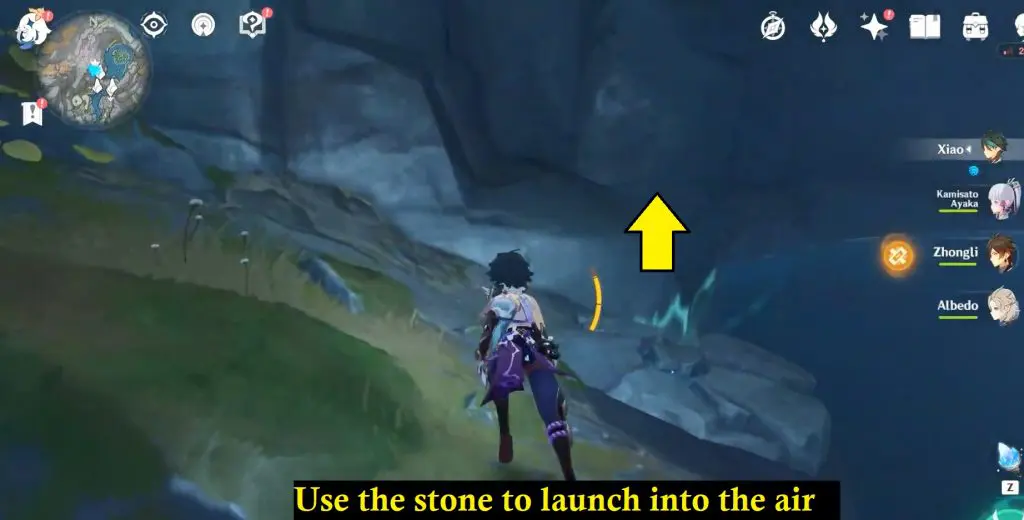 Climb up the waterfall and you will notice that the area is a giant circle. You will see some stones that can launch you up in the air.