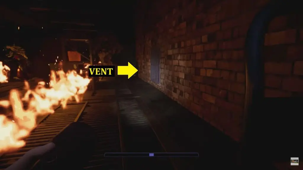 Go to the next room and continue the zig-zig path along the burning floor to each other side of the room where you will find a vent. Enter into the vent and come out on another side as shown below.
