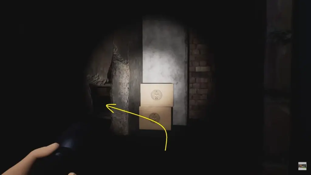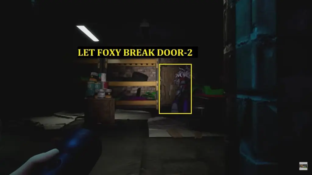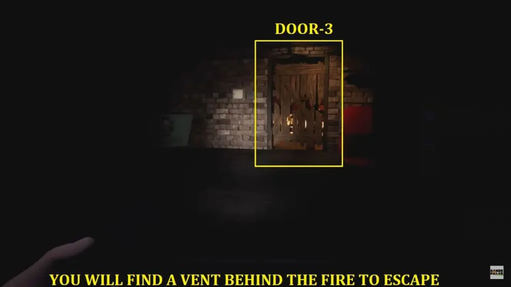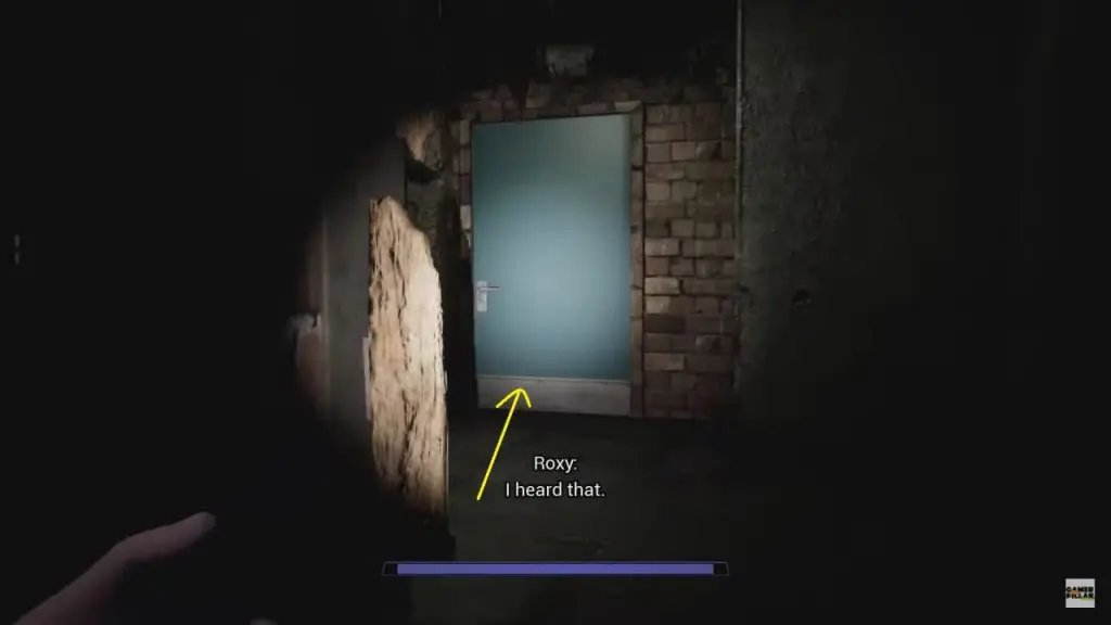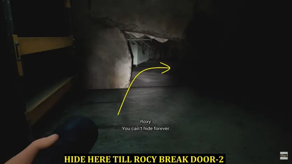 Again, crouch through the wall after the metal door and stand in front of the third wooden door. Wait for Roxy to jump on you and break the third door as shown below images.