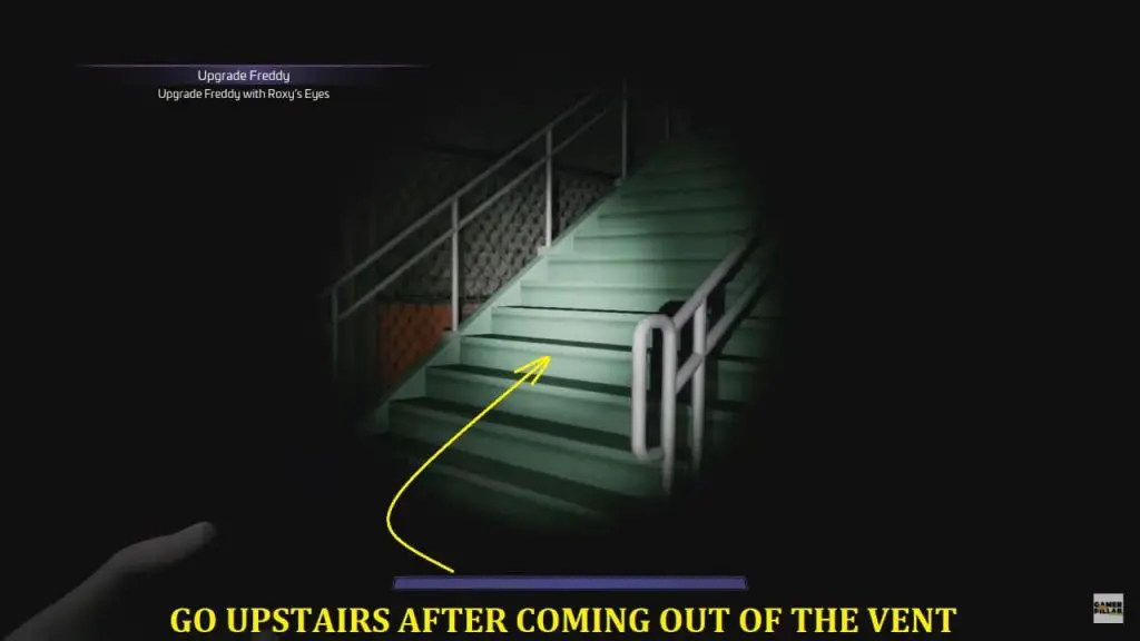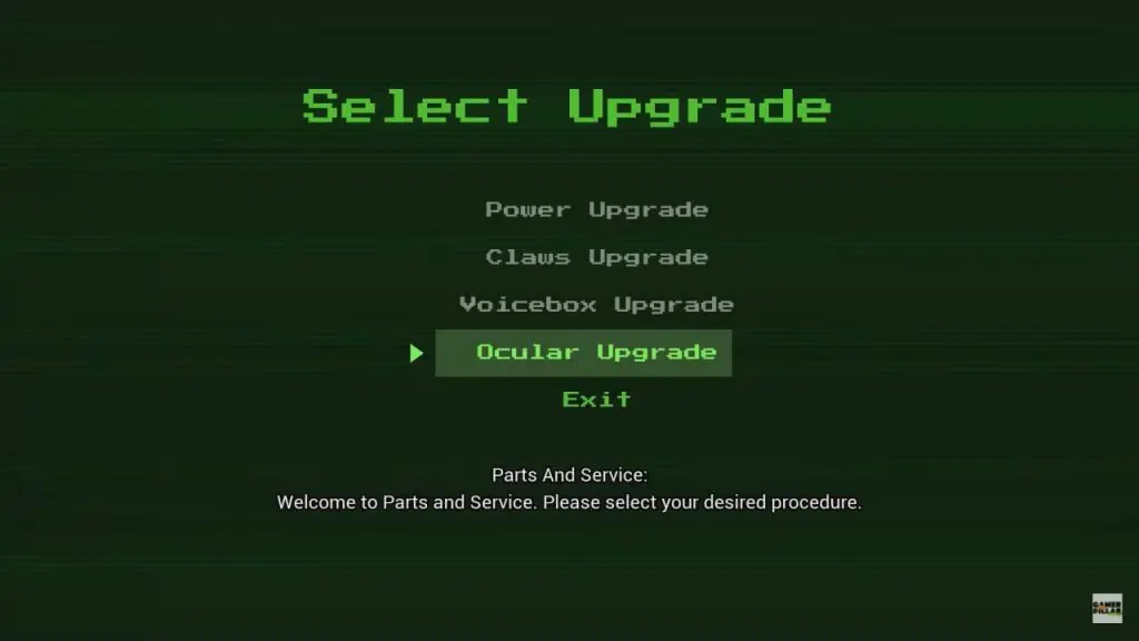 Use the computer in the middle of the room and select “Ocular Upgrade”. Head inside the protective cylinder room and follow the steps correctly to upgrade Freddy’s eyes.