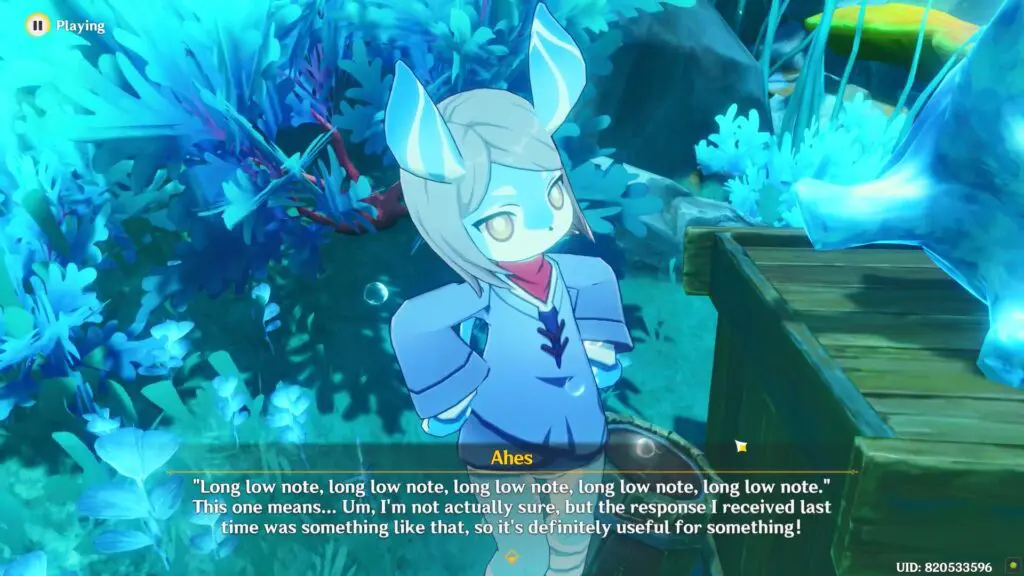Ahes (NPC) in the quest “The Lone Phantom Sail” will direct you to a location in the Elton Trench’s underwater section. Follow the marker to reach the location. You will find Ahes beside an Echoing Conch and she will ask you to send a signal.