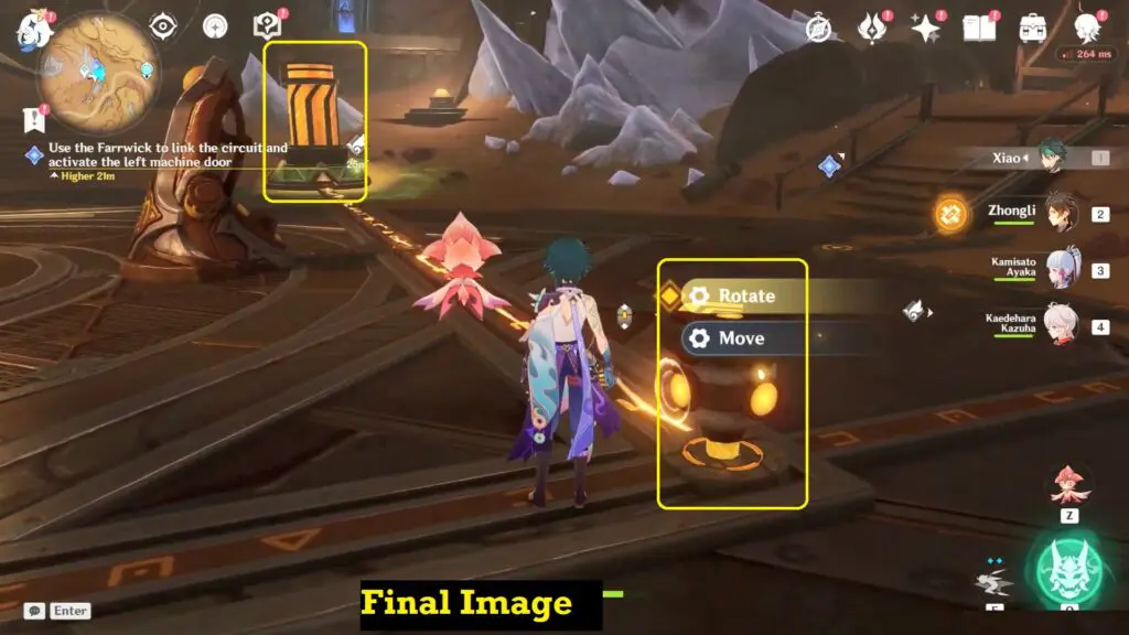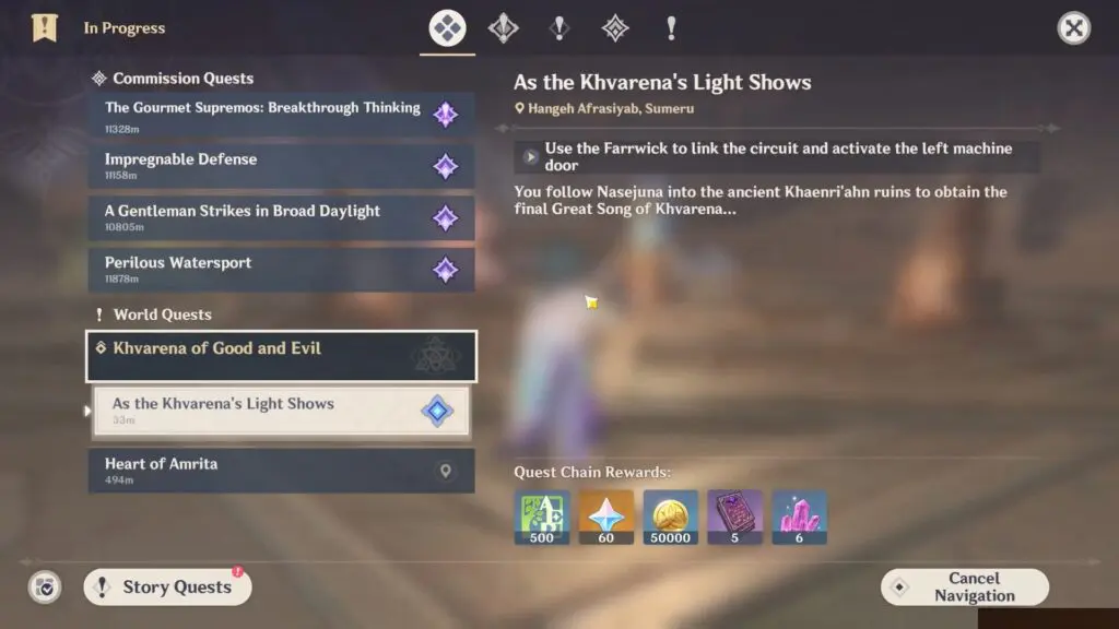 This guide shows how to complete the “Use the Farrwick to link the circuit and activate the left machine door” objective for the As the Khvarena’s Light Shows World Quest in the Gavireh Lajavard area in Genshin Impact 3.6.