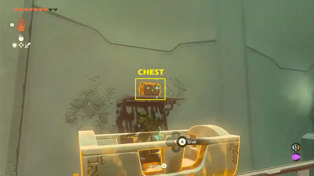 As the cart is moving ahead, you will see a chest on the left side as shown in the picture below. You will get a small window when you will be able to grab it and take it to the other side. If you miss this window, then you can use rewind to go back. Open the chest to get a Sneaky Elixir. Then use the cart to reach the other side and get the blessing to complete the shrine.