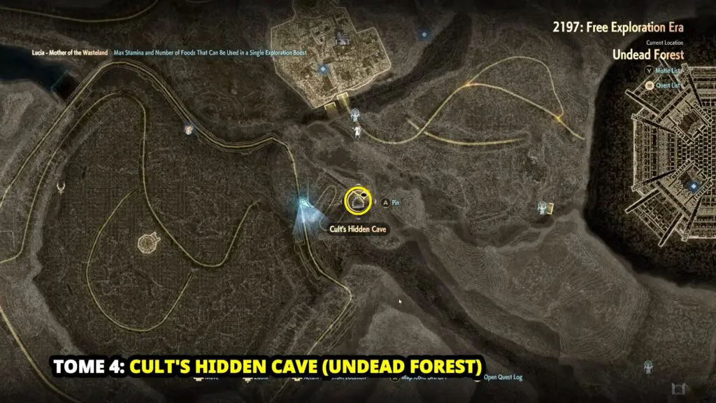 It is located at the Cult’s Hidden Cave in the Undead Forest. Defeat the three waves of enemies to get the last tome.