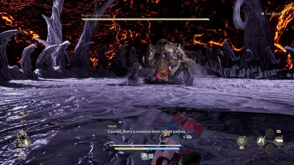 Here, you will face the Boss Slaughter Engine Goliath. Defeat the boss to complete the first part of Valentin’s request and obtain the first Tome.