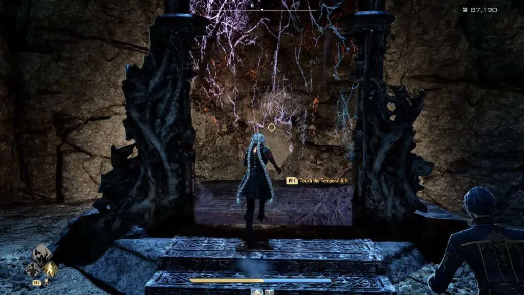 Enter the cave to reach the Shoreline Cavern and continue along the path leading up to the Temporal Rift. Go inside the rift and move all the way to the opposite end, then pass through the double doors to enter the boss arena.