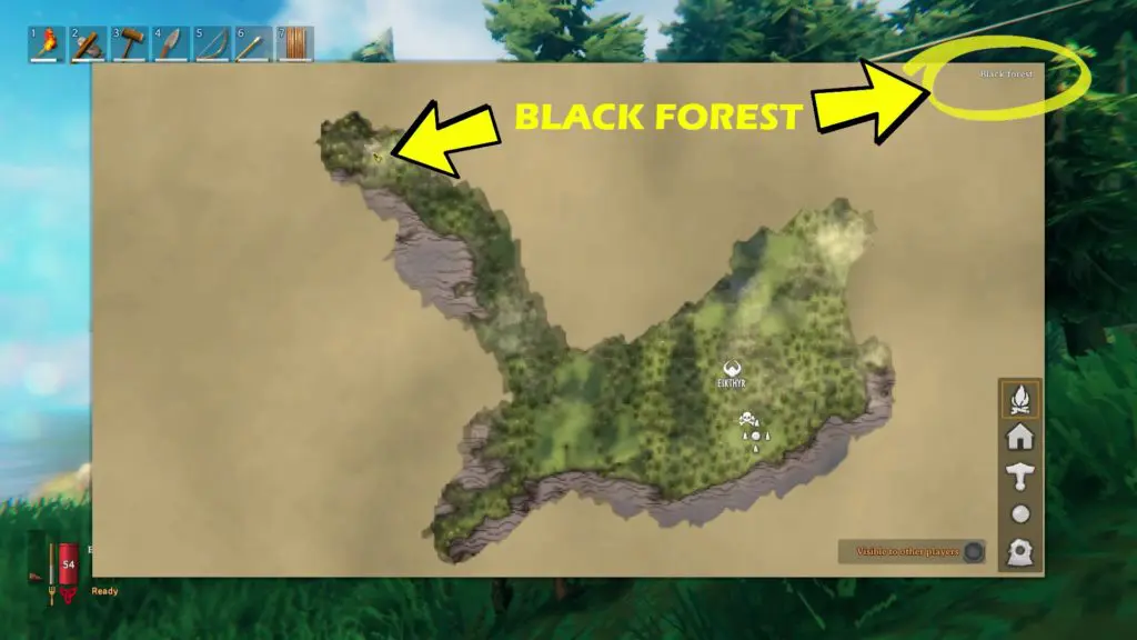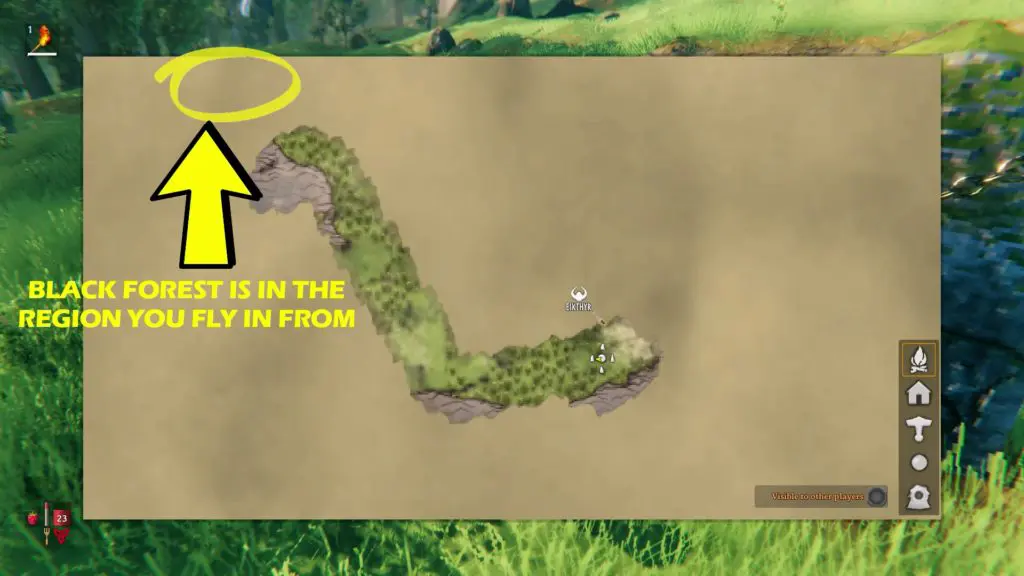 After you have defeated the first boss ‘Eikthyr’, your next objective is to reach the Black Forest in search of the Elder. Unfortunately the location of Black Forest is not marked in the map and also all the maps are different so I cannot point a location on the map to show where the Black Forest is. Although there is a simple trick which will help you find the black forest.