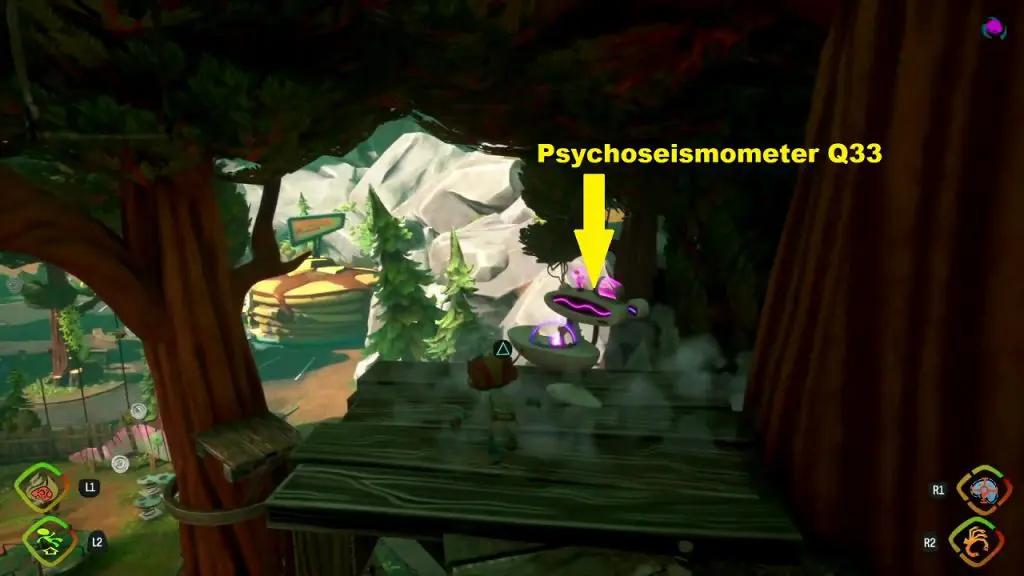 You will get ‘Vent All The Psychoseisometers For Gisu‘ optional mission by talking to Gisu. You will find Gisu in the Treehouse in Motherlobe Quarry. Treehouse is marked as ‘2’ on the Quarry map (see the picture below). Talk to Gisu to start the quest. In the quest, you will be tasked to vent the bad energy for the Psychoseismometers. Completing the quest unlocks the ‘Good Vibes Only’ trophy. This article shows the location of all the three Psychoseismometer, how to reach there and how to vent them.