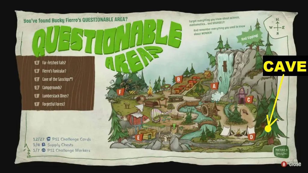 This Psychoseismometer is also in the Questionable Area. It is inside a secret cave behind the trees on the right side of the campgrounds as shown in the picture below. On going behind the trees, you will see a cave, with its entrance blocked by stones. Break the stones to go inside the cave and find Psychoseismometer H18. On interacting with it you will enter its’ mind. Defeat the enemies inside the mind to vent Psychoseismometer H18.