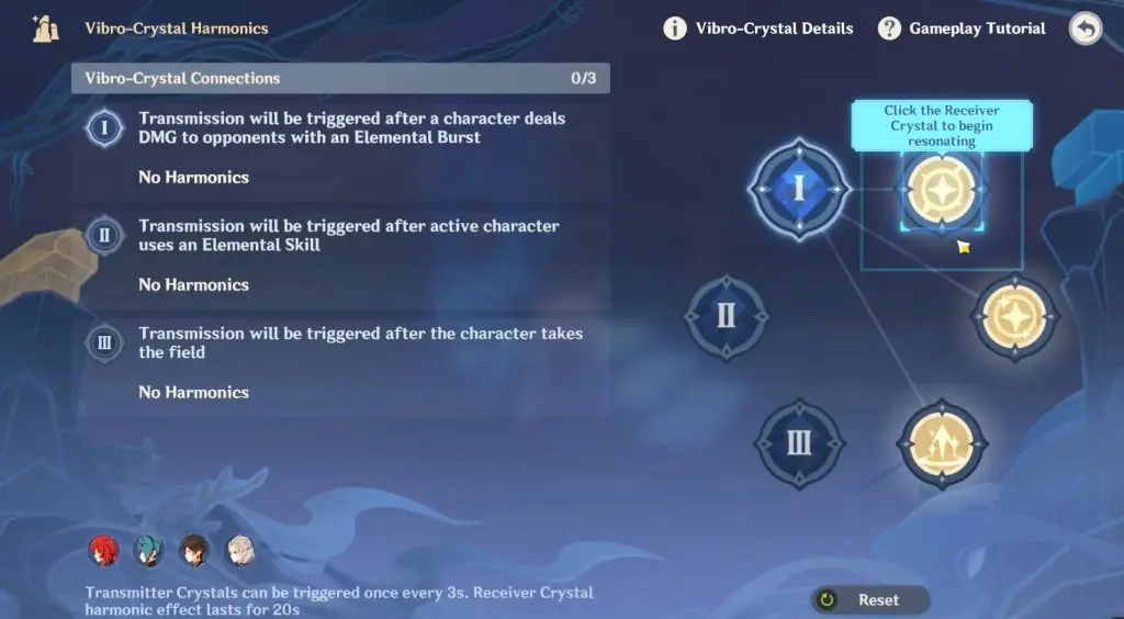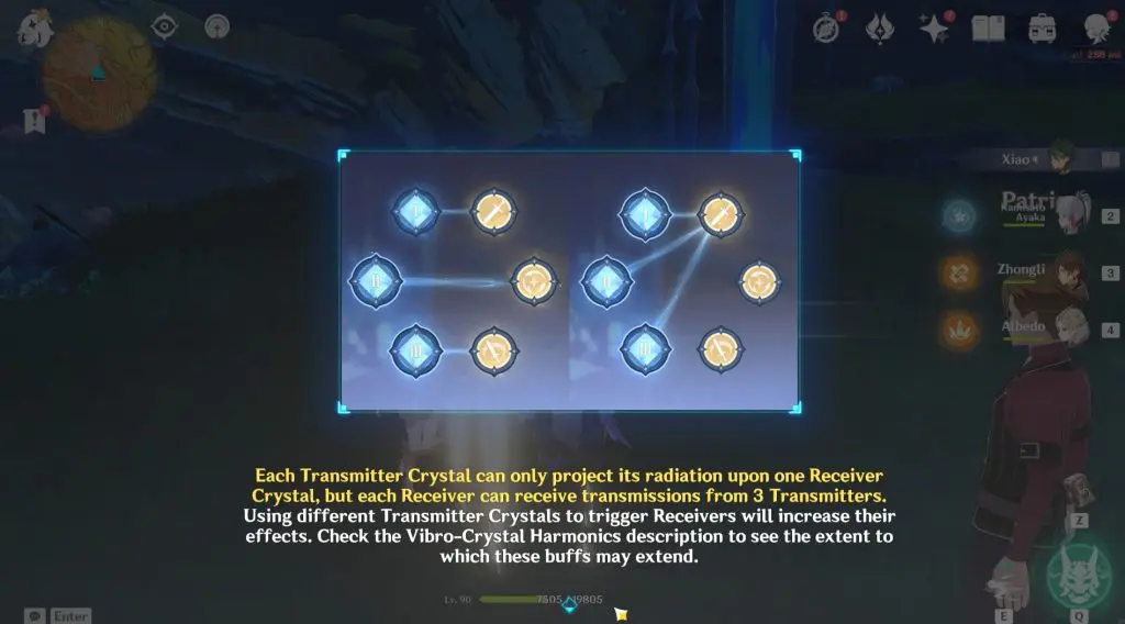 - After connecting Transmitter and Receiver Crystals, when the trigger conditions of the corresponding Transmitter Crystal is reached in the challenge, the buff effect of the corresponding Receiver Crystal can be obtained. Only the character that triggered the “Transmitter Crystal” will receive the buff effects.