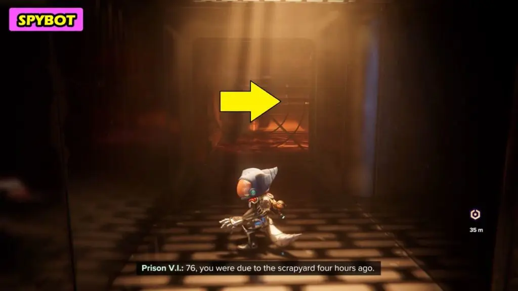 The Ryno Spybot can be collected during the objective “find the others”. During this objective, you’ll have to destroy a fan to enter a ventilation shaft. The Spybot is inside this ventilation shaft and you must collect it before jumping out of the vents. Just before dropping out of the ventilation shaft, you’ll see a breakable fan nearby. In the area behind this breakable fan is the Ryno Spybot.