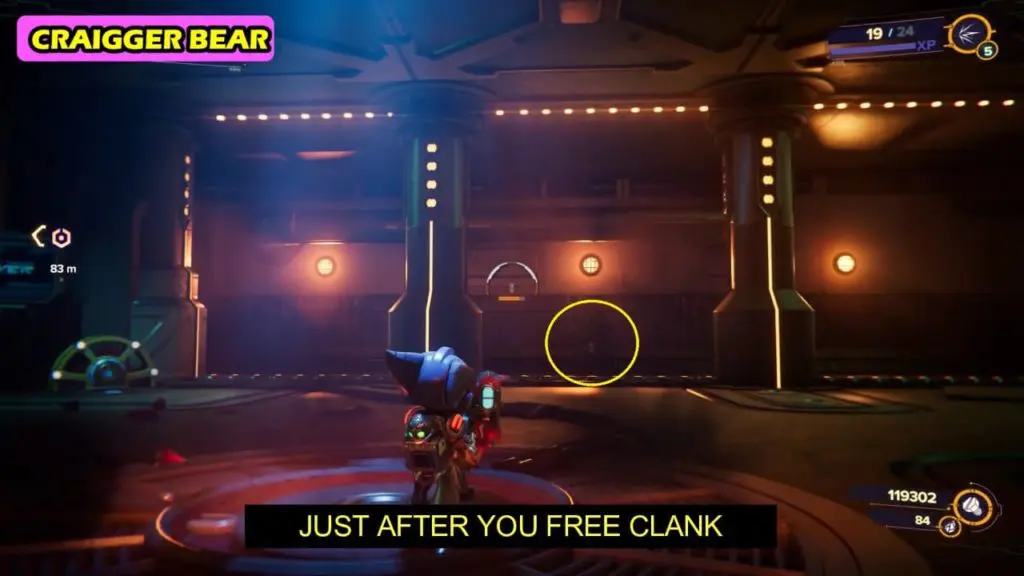 The CraiggerBear can be collected during the objective “free Ratchet and Kit”. You can collect it just after freeing Clank and the others. The CraiggerBear is on the bench inside the cell (room) in which other NPCs were being held captive. Just after freeing Clank check the room on the right (east) side.