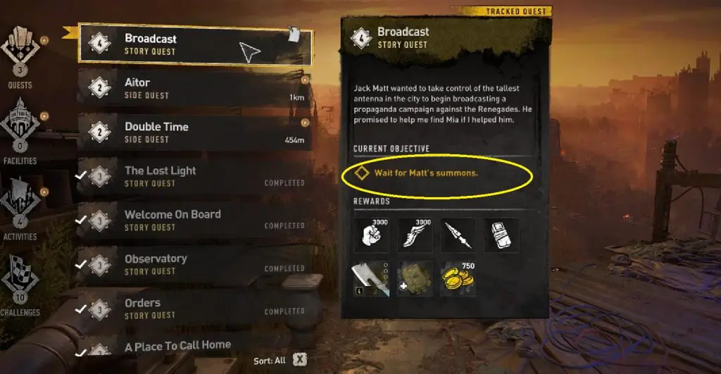 While the main story quest Broadcast in Dying Light 2 you’ll get the objective “Wait for Matt’s Summons” and we see some of the players are getting stuck on this step. There are a lot of quests in Dying Light 2 that seem to be bugged at the moment and players can’t able to complete certain quest steps. This can be a bug or the player need to level up stamina or need to be at a certain location for it to trigger. You can follow the below steps to trigger “Wait for Matt’s Summons”.