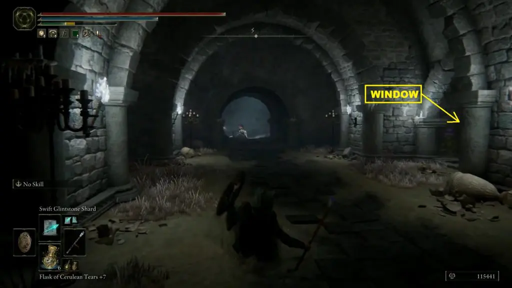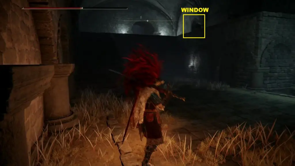 After climbing up the stairs, go in a linear path till the end. In the final room, you will find Ghost Glovewort [6]. Jump down from the window on the right side in this room as shown below.