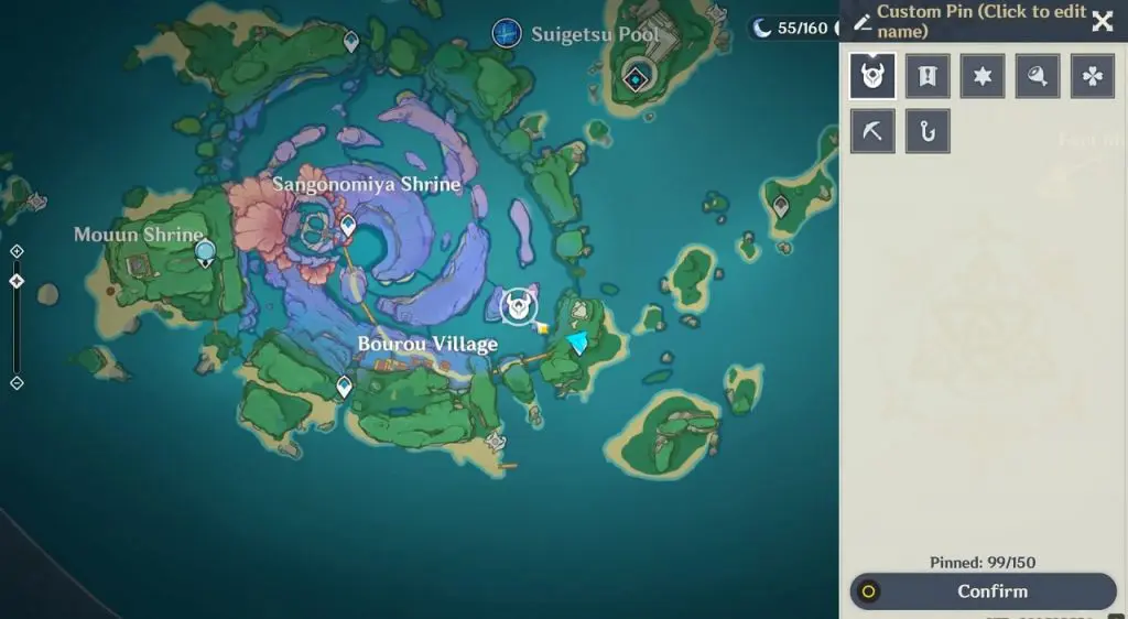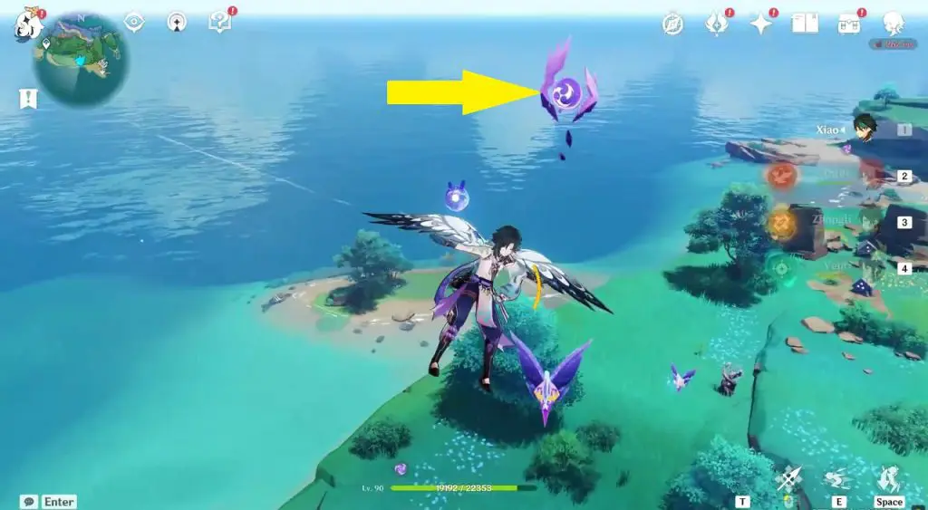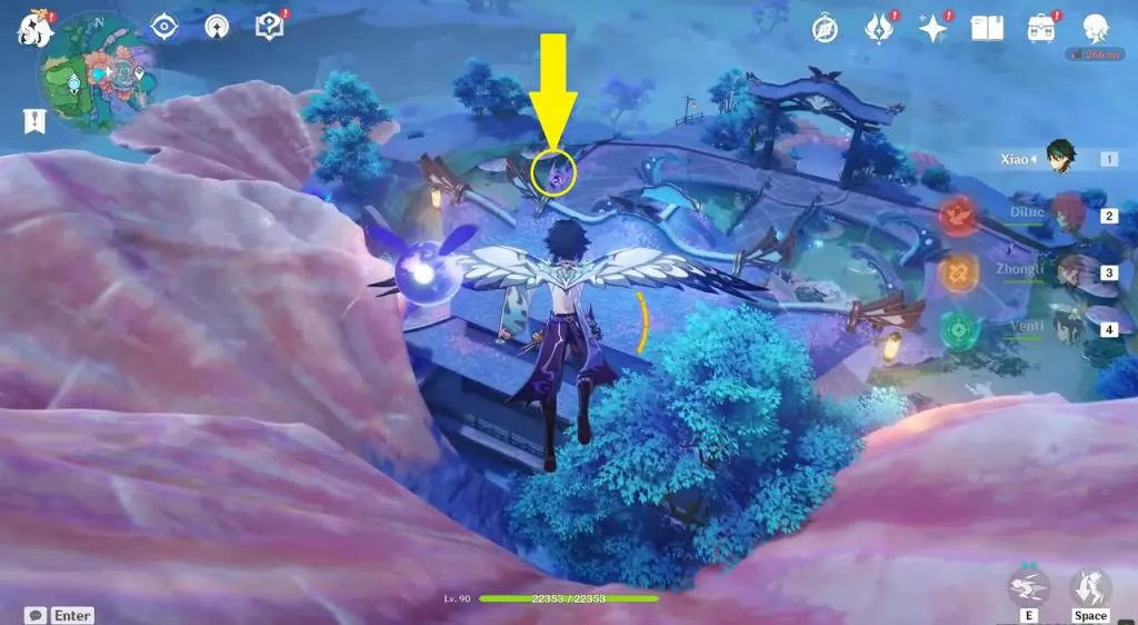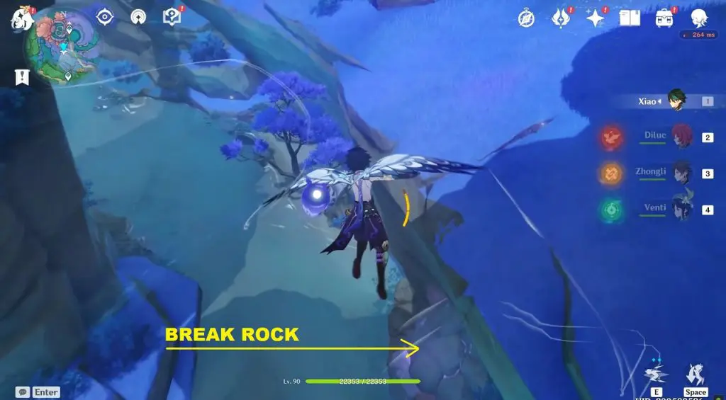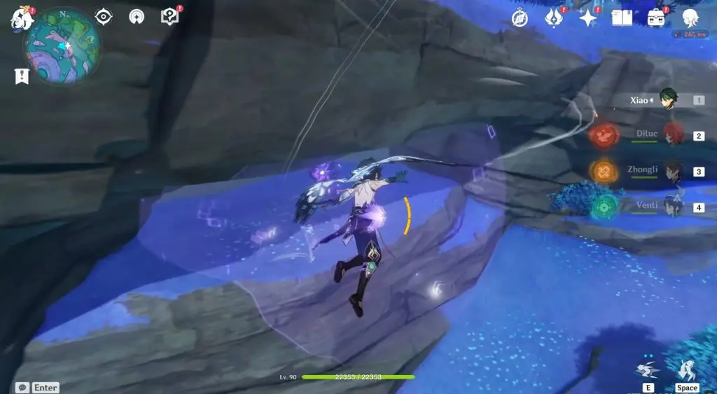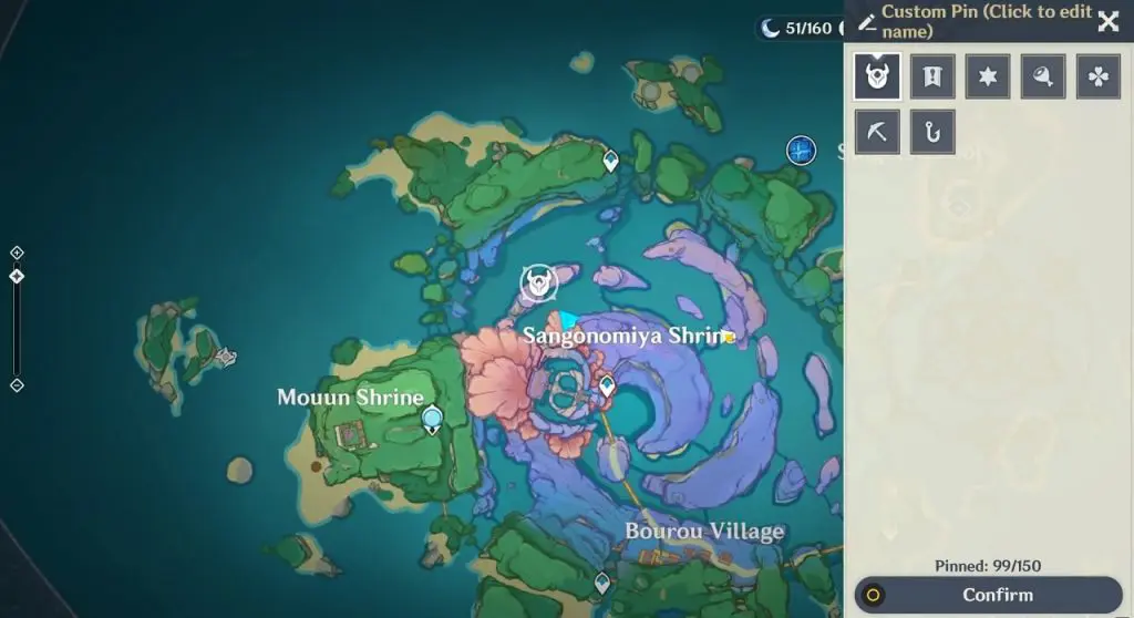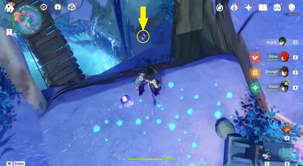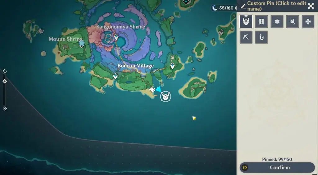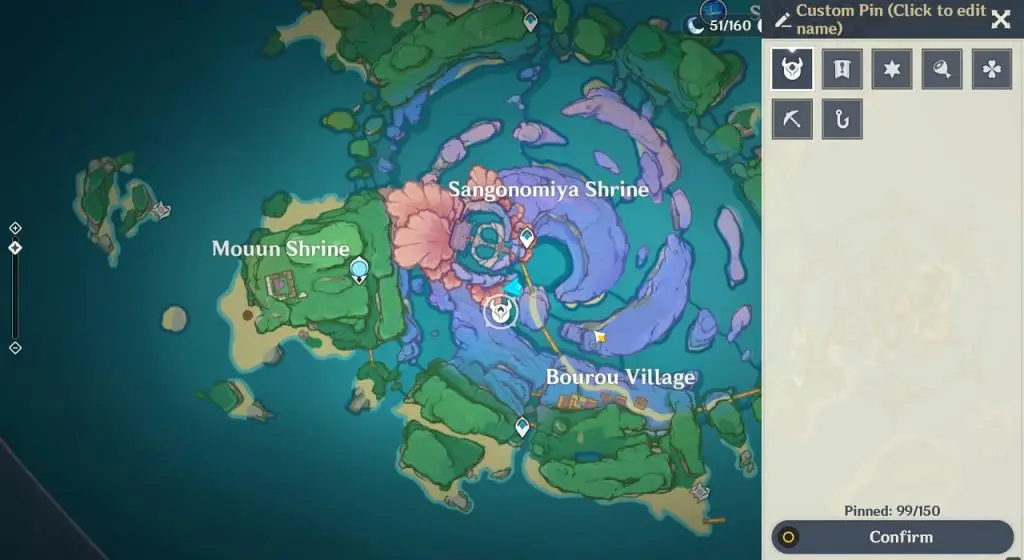 This electroculus is inside a cave at the highlighted location east of Sangonomiya Shrine. You will reach there during the ‘Heart of Watatsumi’ world Quest. After entering the cave, look up and you will see the electroculus up in the air. Climb the wall to reach it.