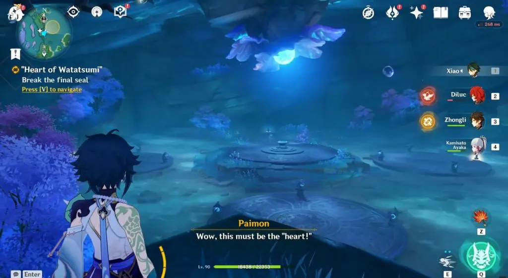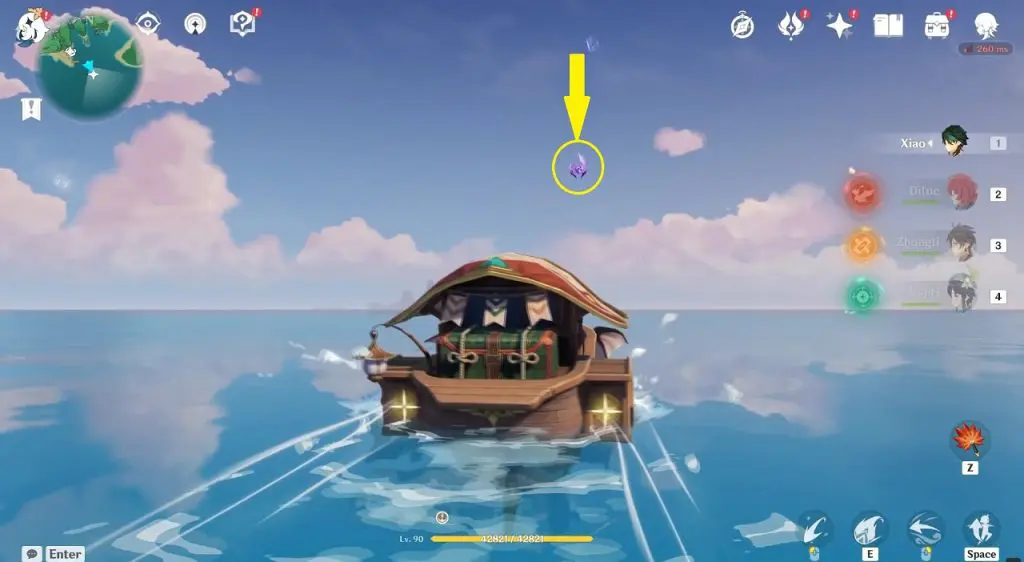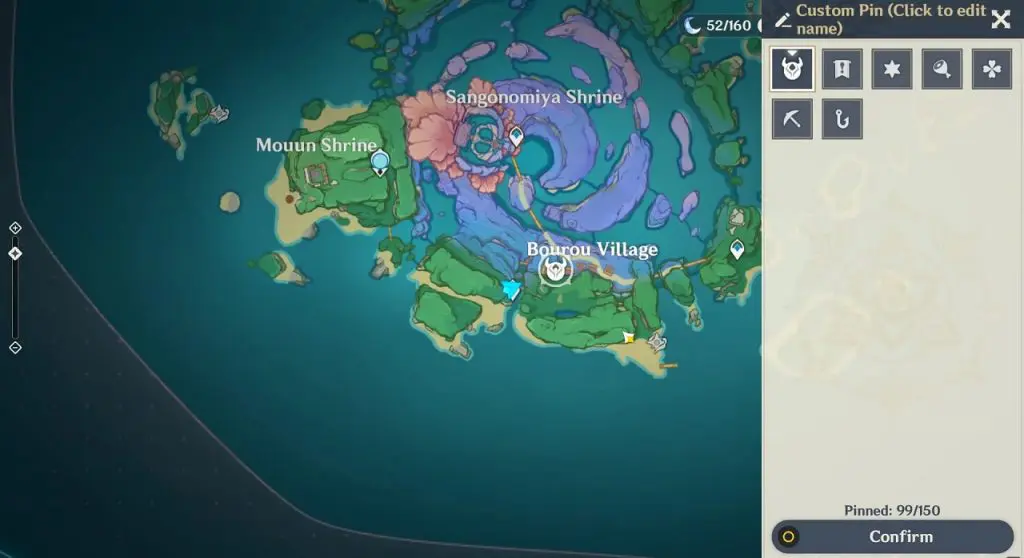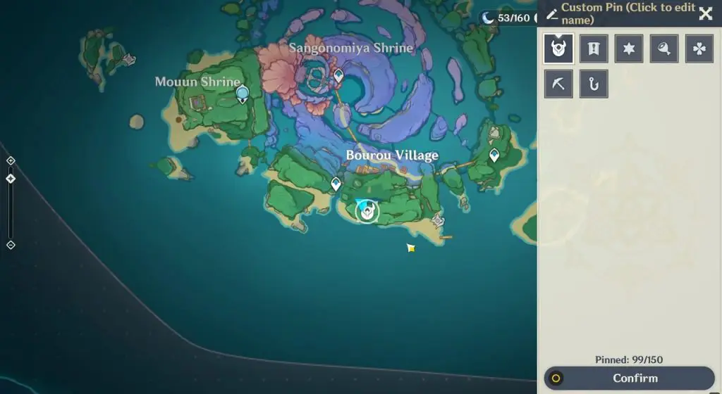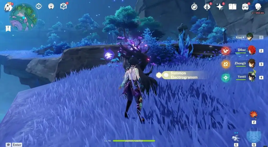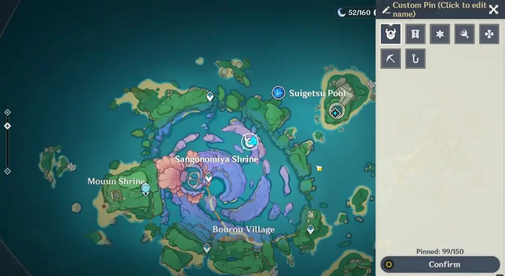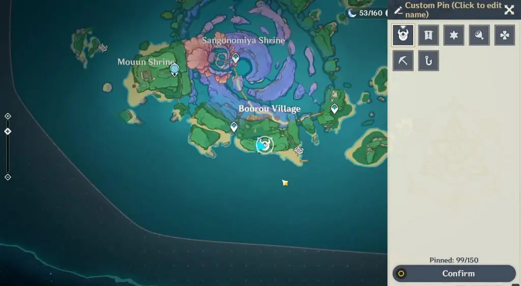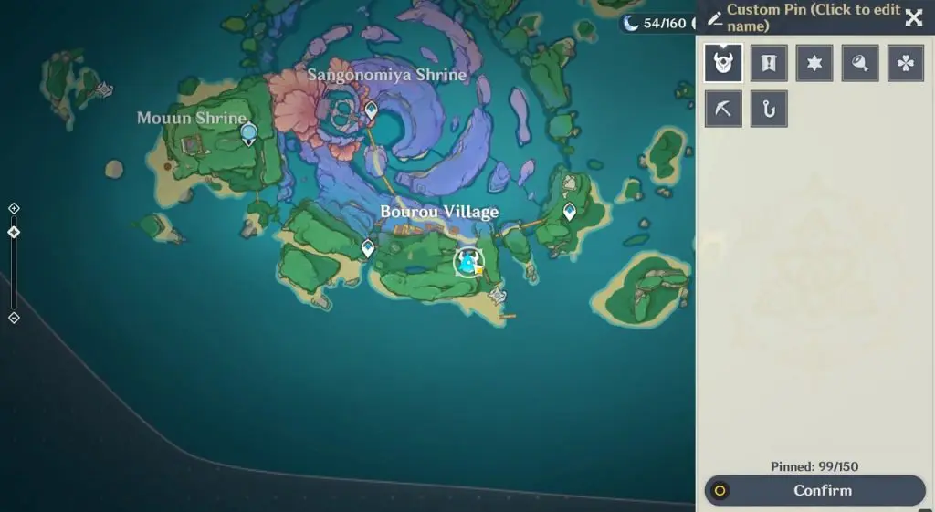 This electroculus is inside a cave at the highlighted location east of Sangonomiya Shrine. You will reach there during the ‘Heart of Watatsumi’ world Quest. After entering the cave, look up and you will see the electroculus up in the air. Climb the wall to reach it.