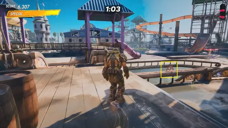 For this goal, the player needs to grind on 5 water pumps to help drain the water around Pirate’s Bay.
